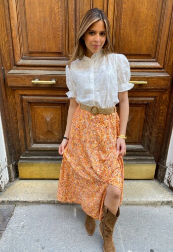 Elle aime s'habiller avec des tissus de qualité et choisit des tenues à l'image de son caractère. Elle sait mêler confort et élégance au quotidien.